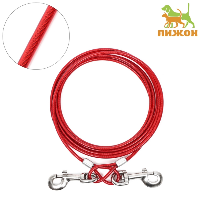 Трос для привязи собак с 2 карабинами, 3 м, толщина троса 5 мм