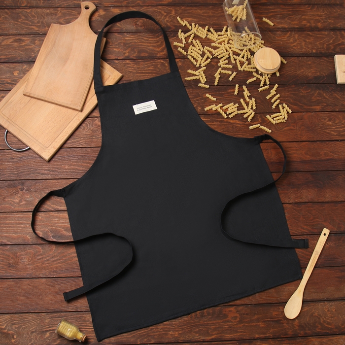 Фартук Доляна "Душевная кухня" цв.черный 60х70см, рогожка, 100% х/л