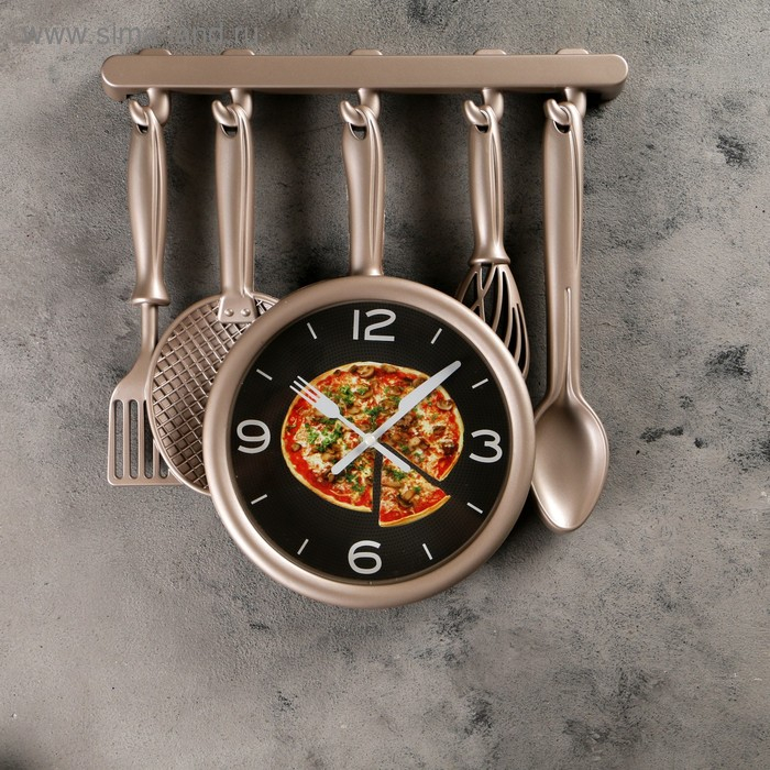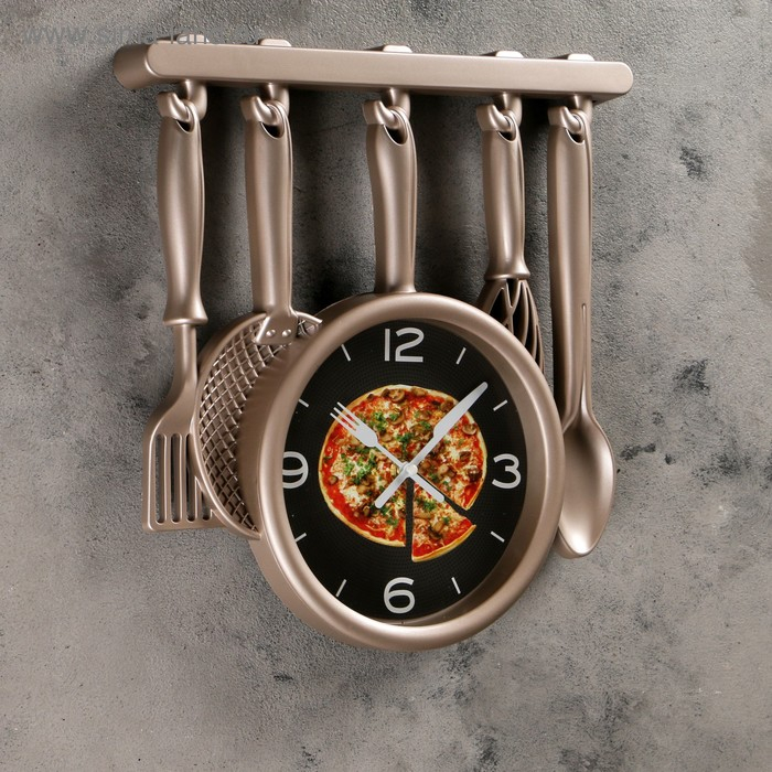 Часы настенные, серия: Кухня, "Кухонная утварь", плавный ход, 32 х 34 см, бронзовые