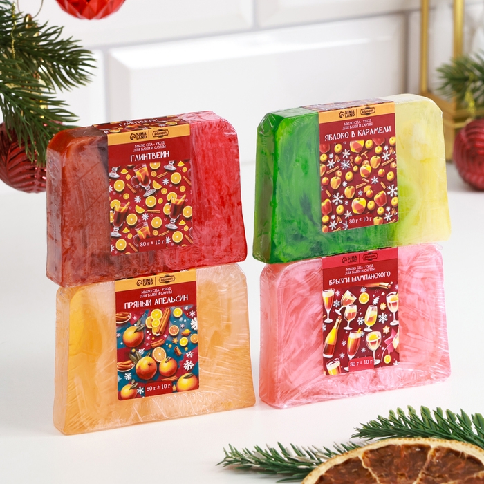 Набор мыла 4 шт "Глинтвейн, Пряный Апельсин, Брызги шампанского, Яблоко в карамеле" по 80 г