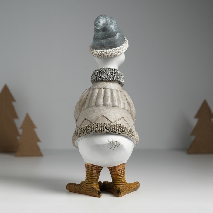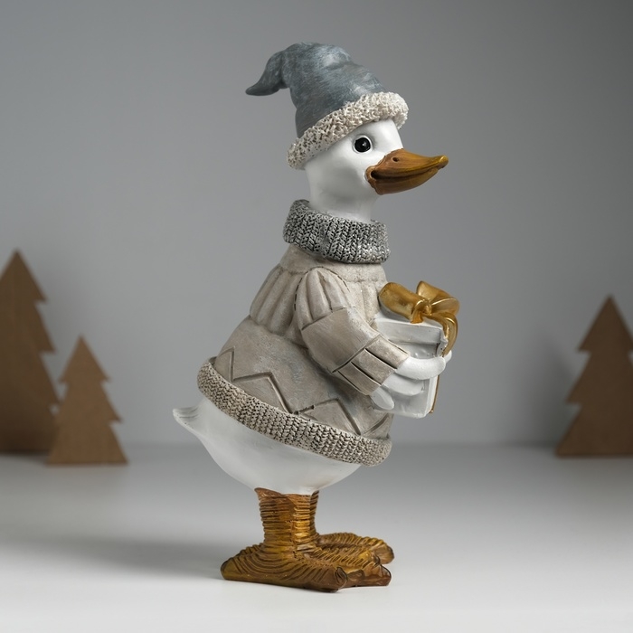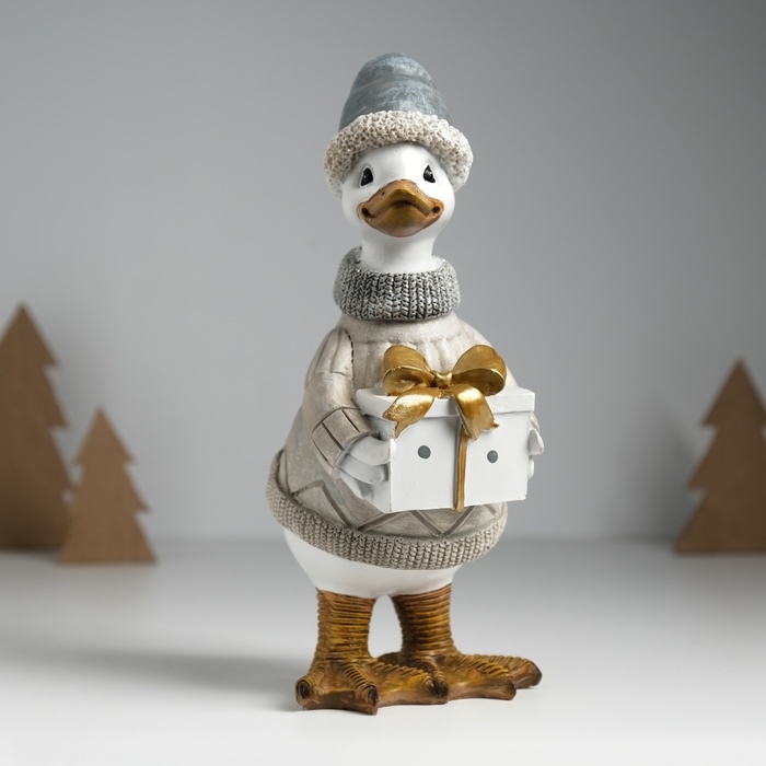 Сувенир полистоун "Гусь в бежевом свитере, с подарком" 9,5х12х22,5 см