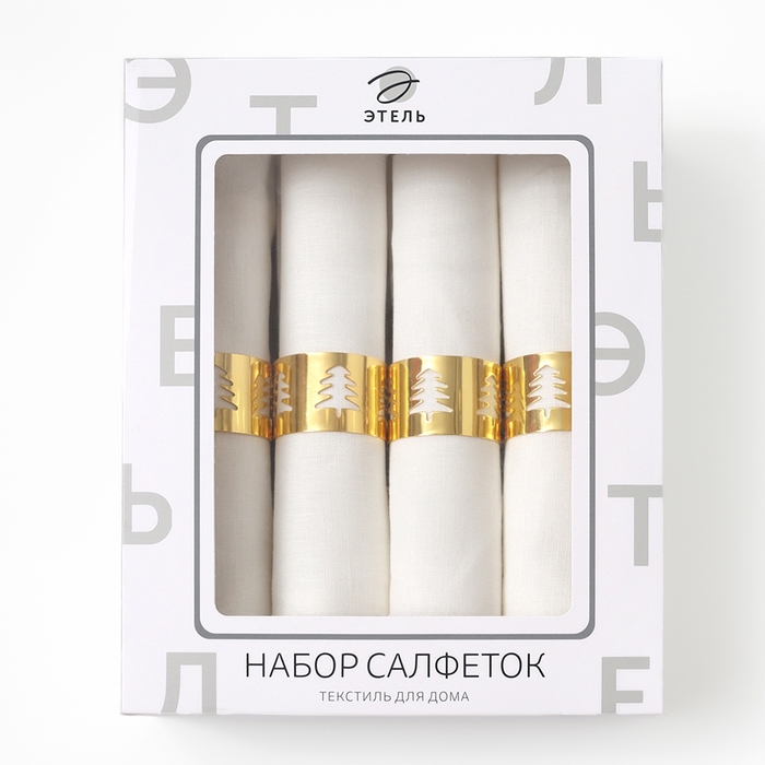 Набор салфеток с декорат. кольцами Этель Golden deer 40х40 см - 4 шт, 100% лён