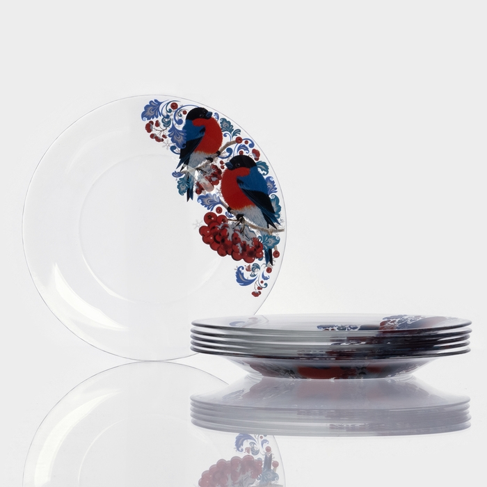 Набор тарелок сервировочных 6шт. арт.327/6-Д "Снегири на рябине" Набор тарелок 6шт.