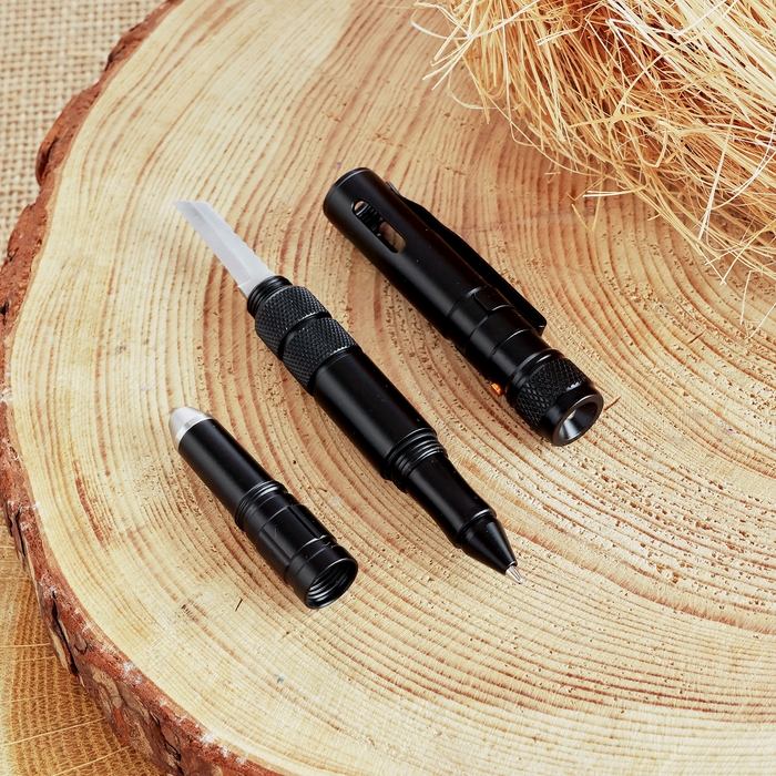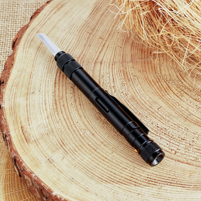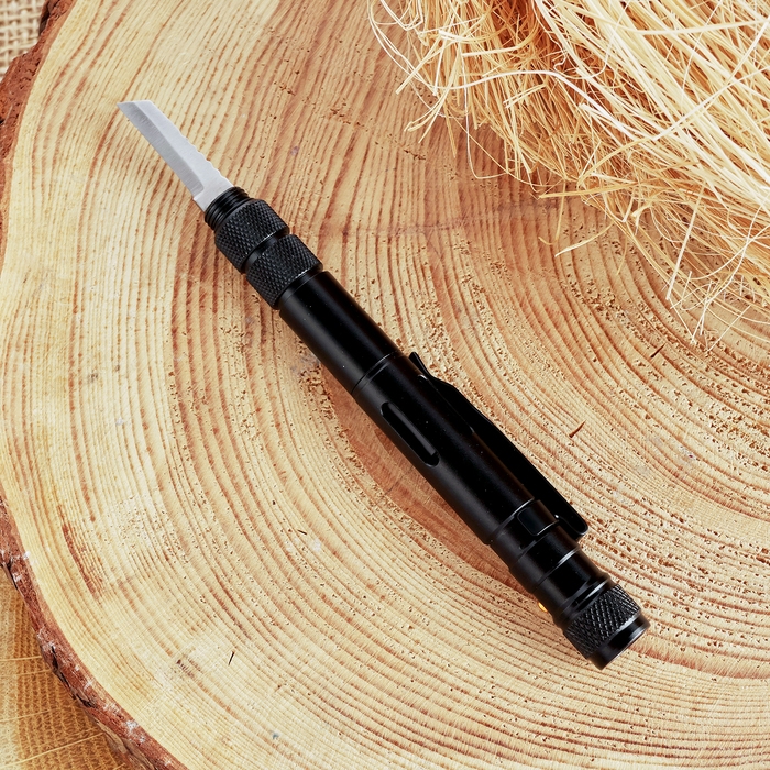 Ручка-стеклобой с фонариком и ножом 16см