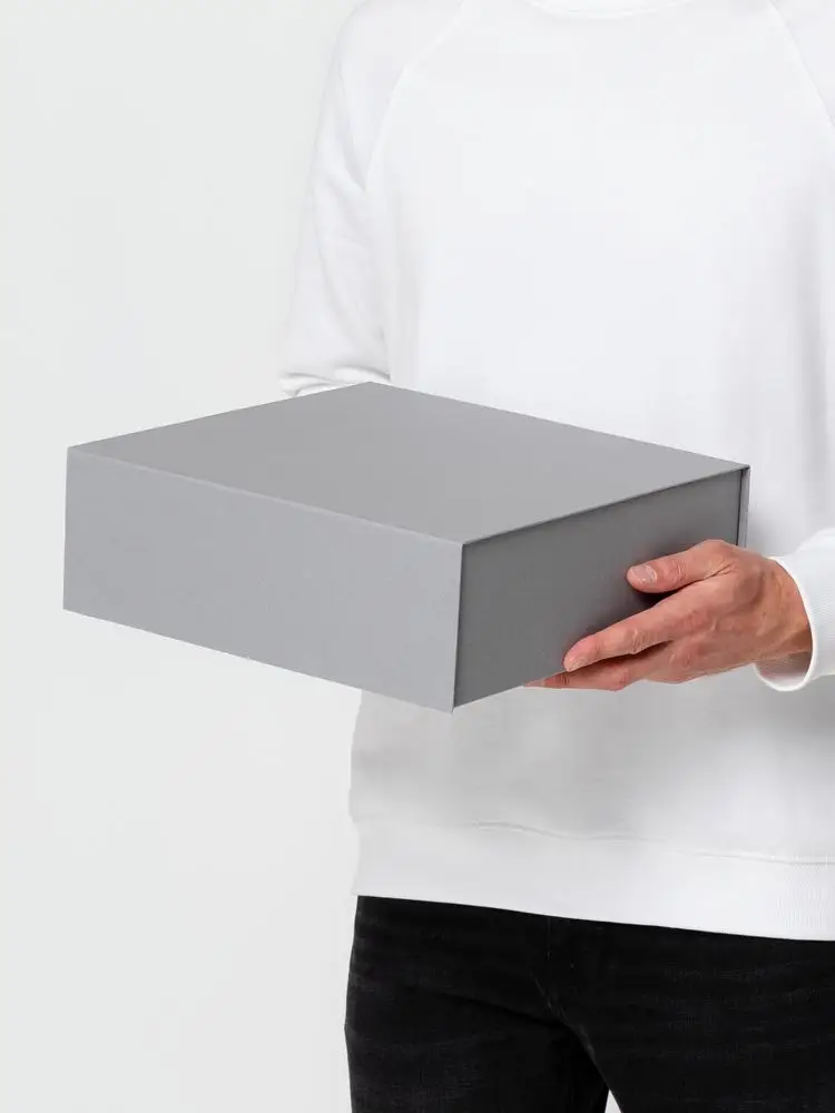 Коробка изготовлена из переплетного картона 1,5 мм, кашированного дизайнерской бумагой Malmero.
