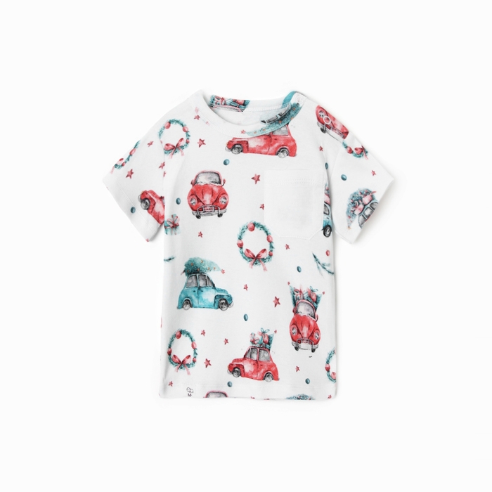 Футболка детская MINAKU "New Year's cars", цвет белый, рост 74-80 см