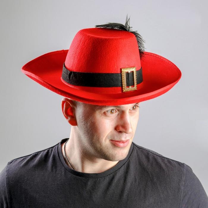 Карнавальная шляпа с пером и лентой, р-р. 56-58, цвет красный