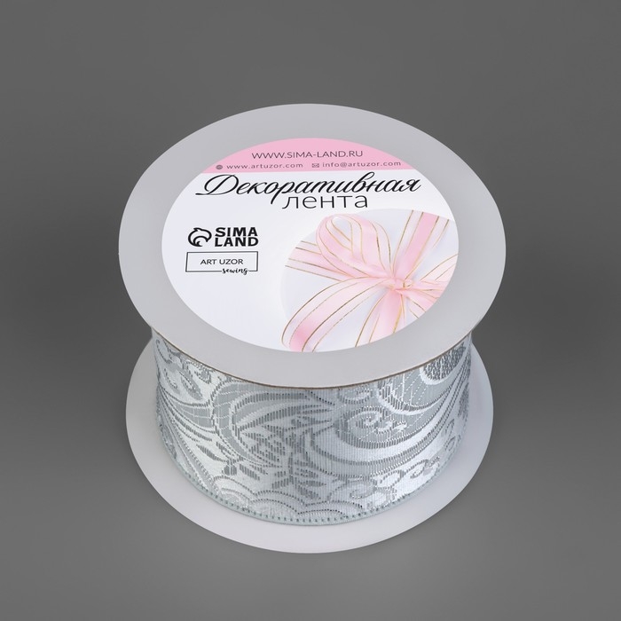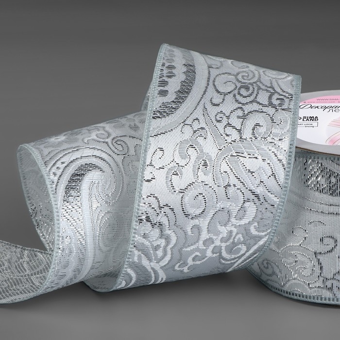 Лента декоративная «Жаккард», 50 мм, 9 ± 0,5 м, цвет серебряный