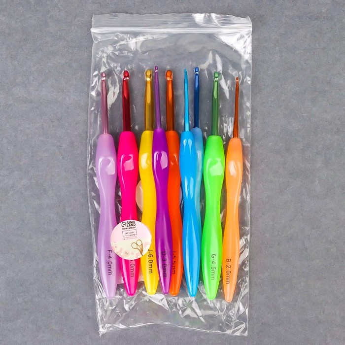 Набор крючков для вязания, с пластиковой ручкой, d = 2,5-5 мм, 14 см, 6 шт, цвет разноцветный