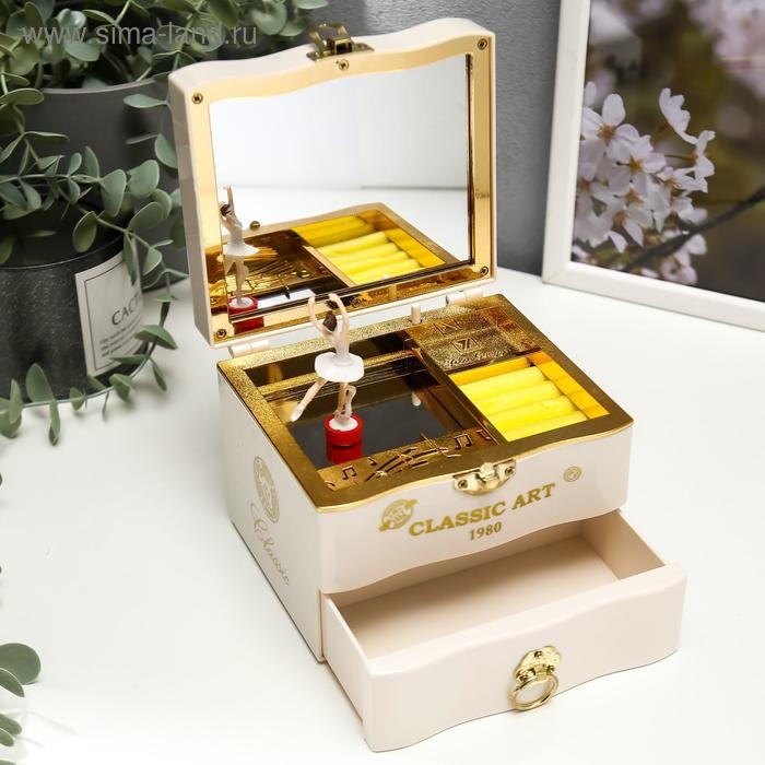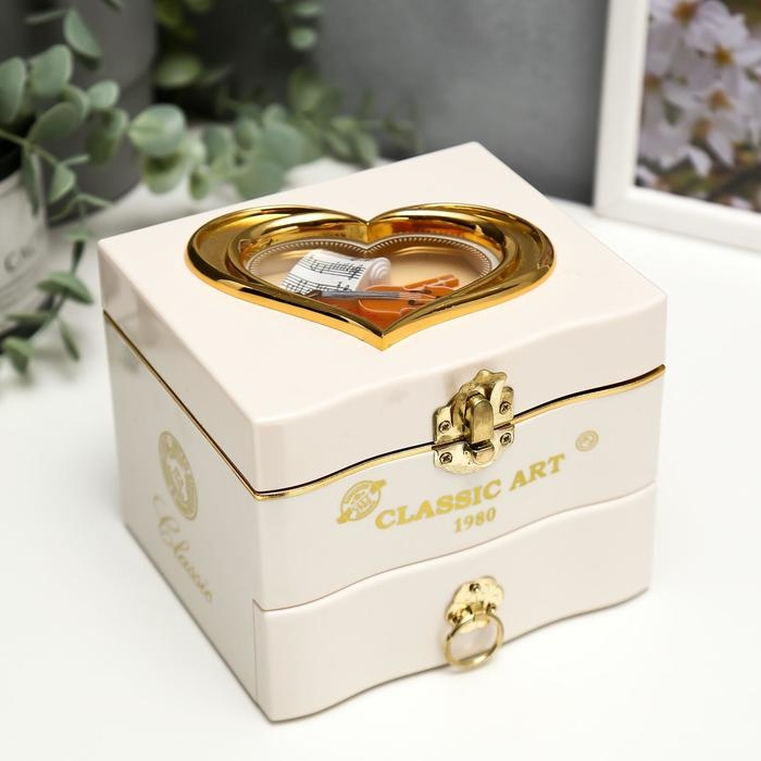 Шкатулка пластик музыкальная механическая "Комод" белый 11х13,3х11,5 см