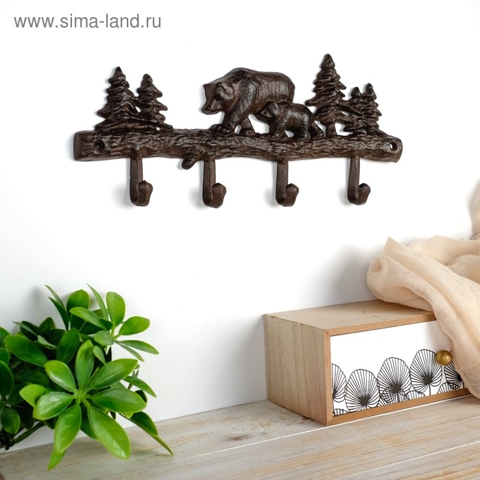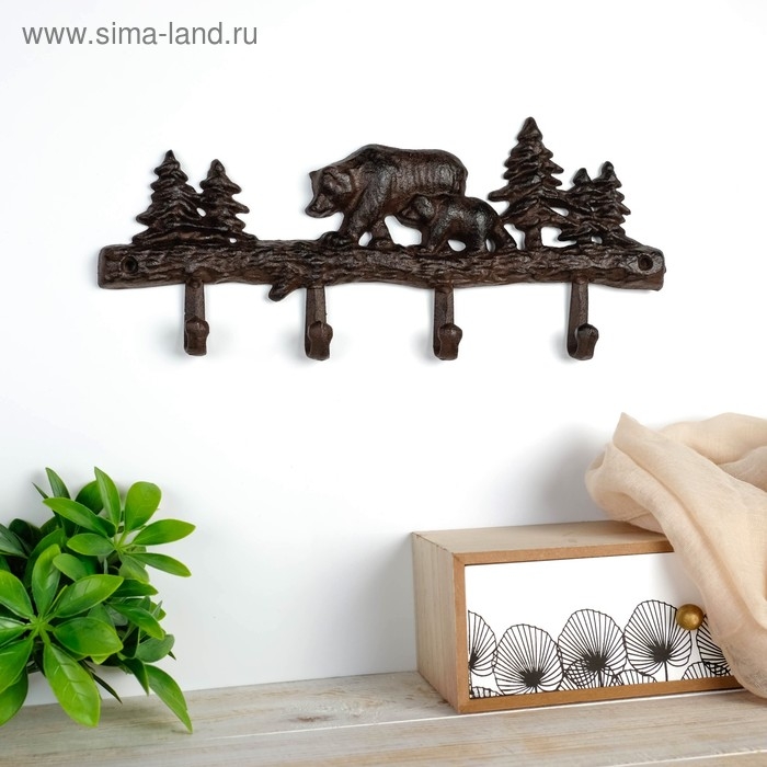 Крючки декоративные металл "Медведь с медвежонком в лесу" 14,5х33х2,5 см