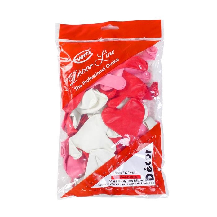 Шар латексный 12", сердце, стандарт, набор 50 шт., цвета МИКС