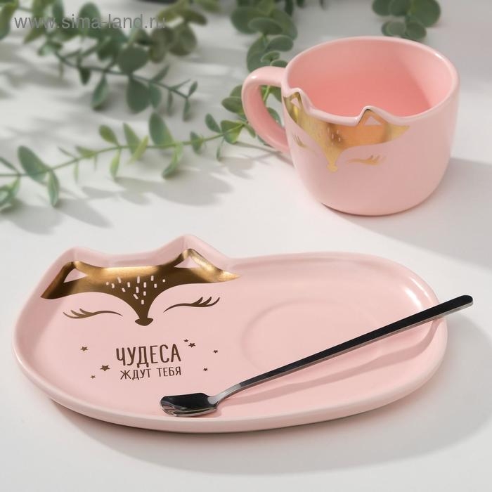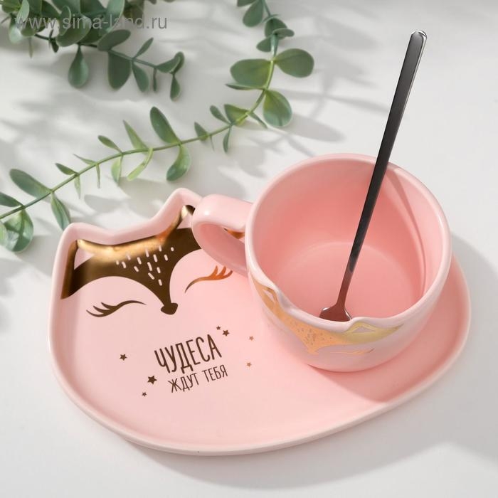 Набор «Чудеса ждут тебя»: кружка 200 мл, блюдечко 18х11, ложка