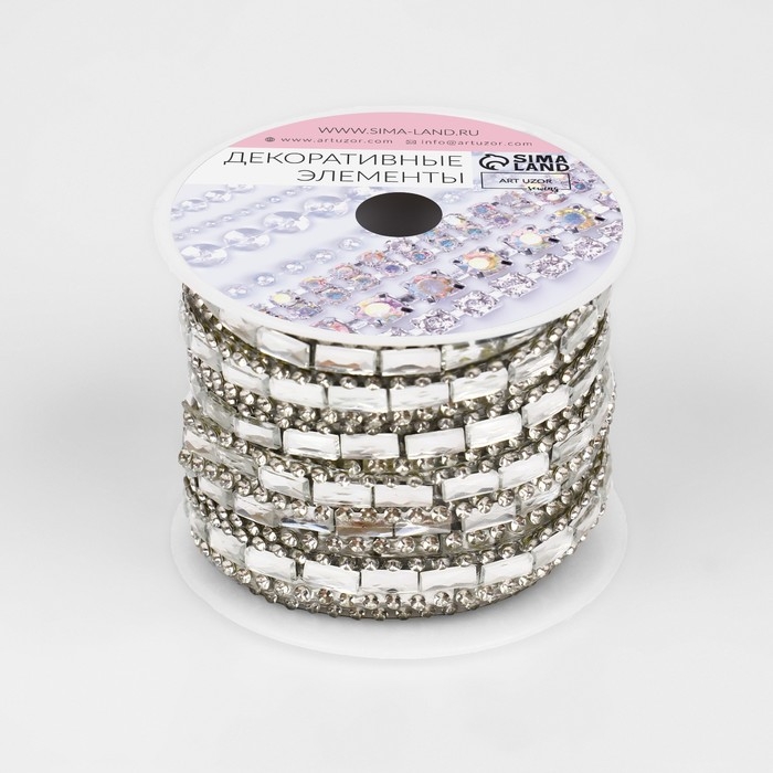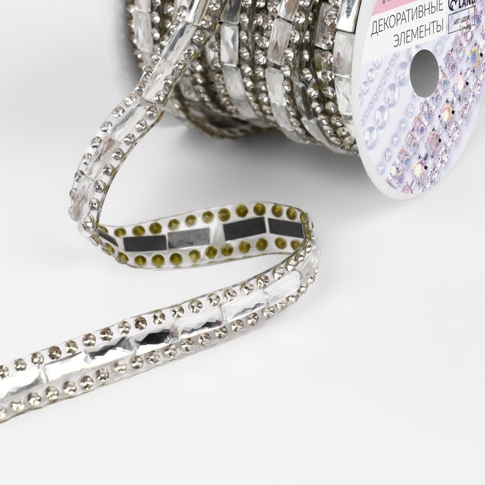 Стразы термоклеевые «Прямоугольник», ширина - 8 мм, 4,5 ± 0,5 м, цвет серебряный