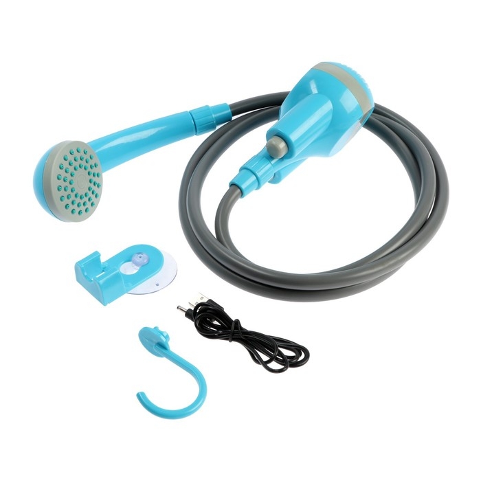 Портативный походный душ ZEIN: лейка, шланг, помпа с USB-кабелем, держатель, крючок