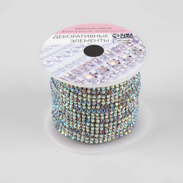Стразы термоклеевые, с голографией, ширина - 7 мм, 4,5 ± 0,5 м, цвет серебряный