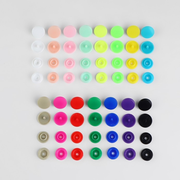 В наборе пластиковых кнопок: 15 разных цветов по 10 штук. В наборе разноцветные кнопки, не все варианты могут быть представлены на фото.