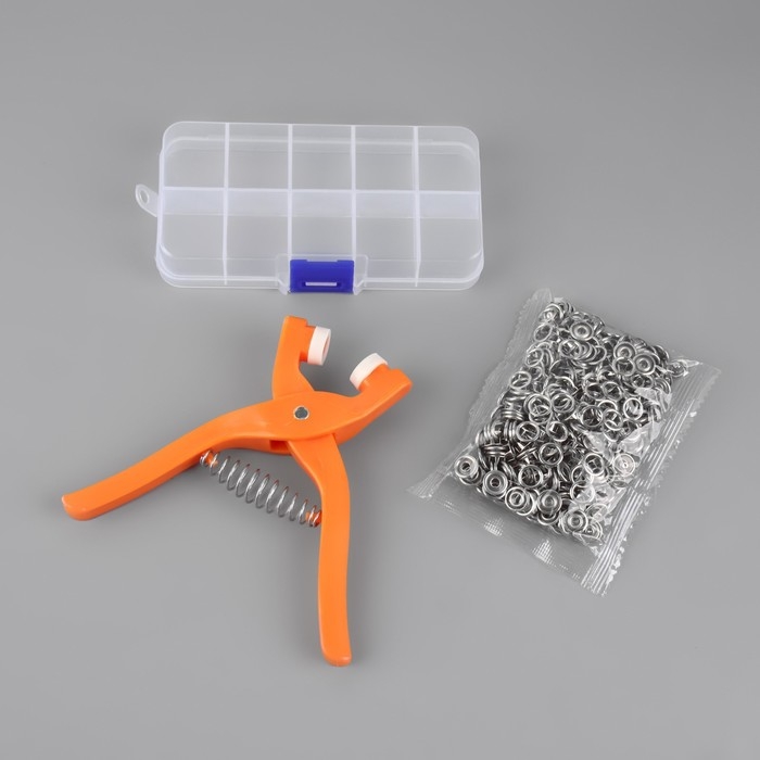 Щипцы для установки открытых рубашечных кнопок d = 9,5 мм, с кнопками 100 шт, в органайзере, цвет МИКС