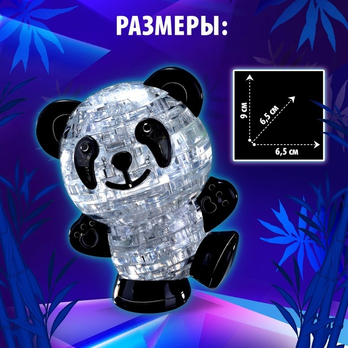 3D пазл «Панда», кристаллический, 53 детали, световой эффект, цвета МИКС
