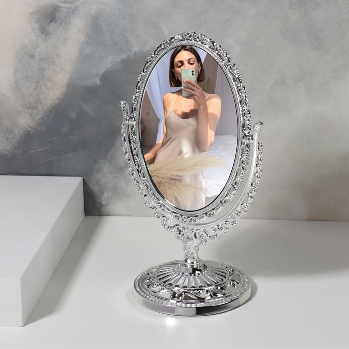Зеркало настольное «Овал», двустороннее, с увеличением, зеркальная поверхность 9 × 12 см, цвет серебристый