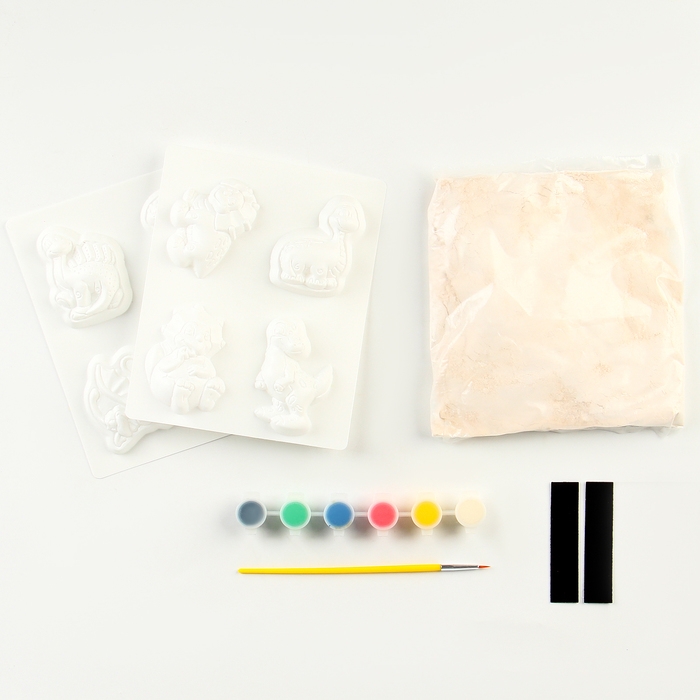 Процесс создания наборов для творчества «Магниты из гипса» — интересное и увлекательное занятие. Гипс — это гипоаллергенный материал, который легко принимает любые формы и хорошо покрывается краской. Сделать красивую фигурку не составит труда, а весь процесс принесёт пользу для развития малыша.