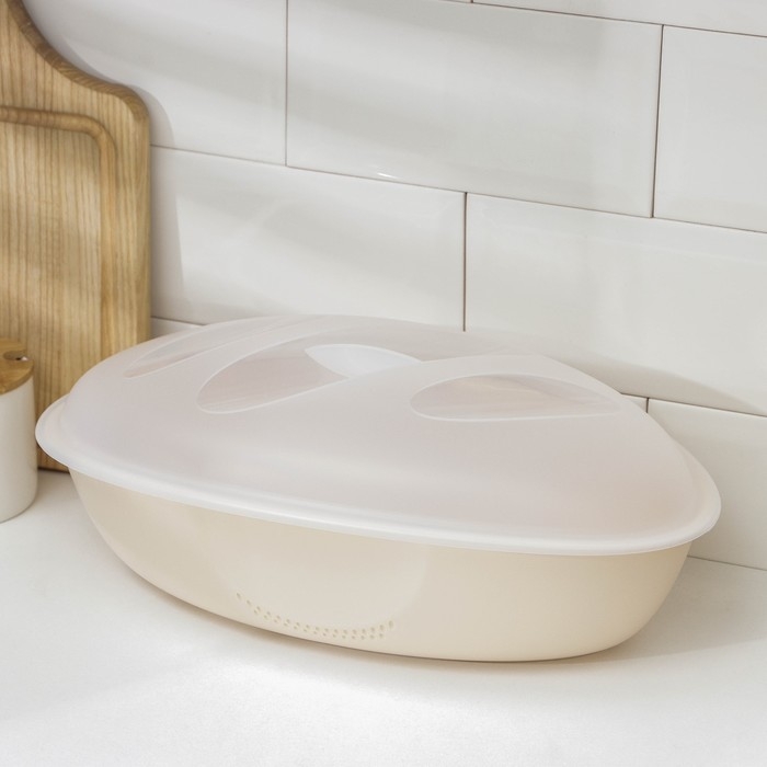 Специальные отверстия на корпусе способствуют циркуляции воздуха и позволяют хлебу «дышать». Забудьте о плесени! Хлебница «Уют» из пищевого пластика позаботится о благоприятном микроклимате.