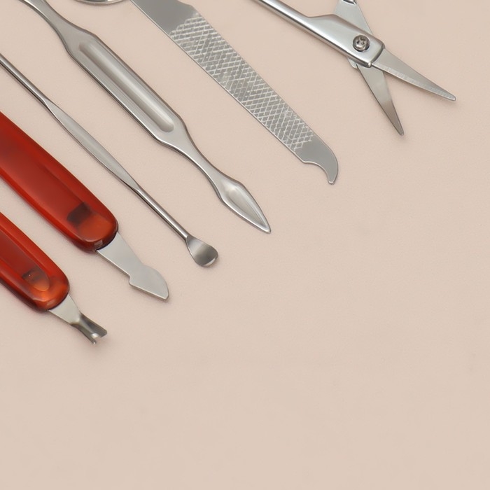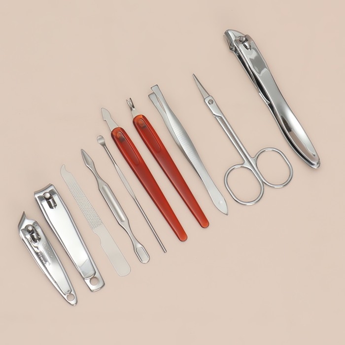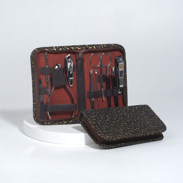 Набор маникюрный, 10 предметов, в футляре, цвет коричневый