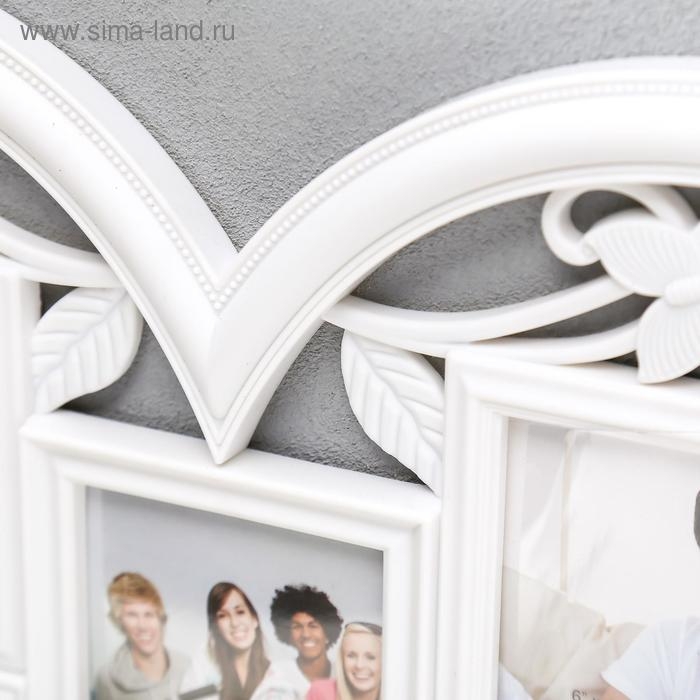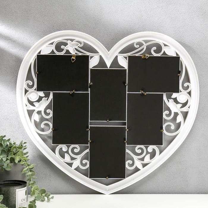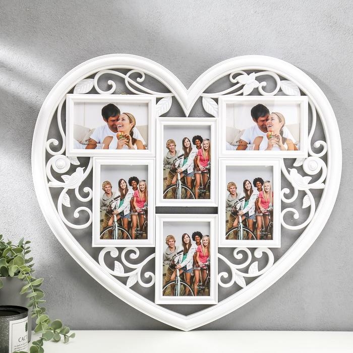 Фоторамка пластик на 6 фото 10х15 см "Сердце ажурное" белая 56х51 см