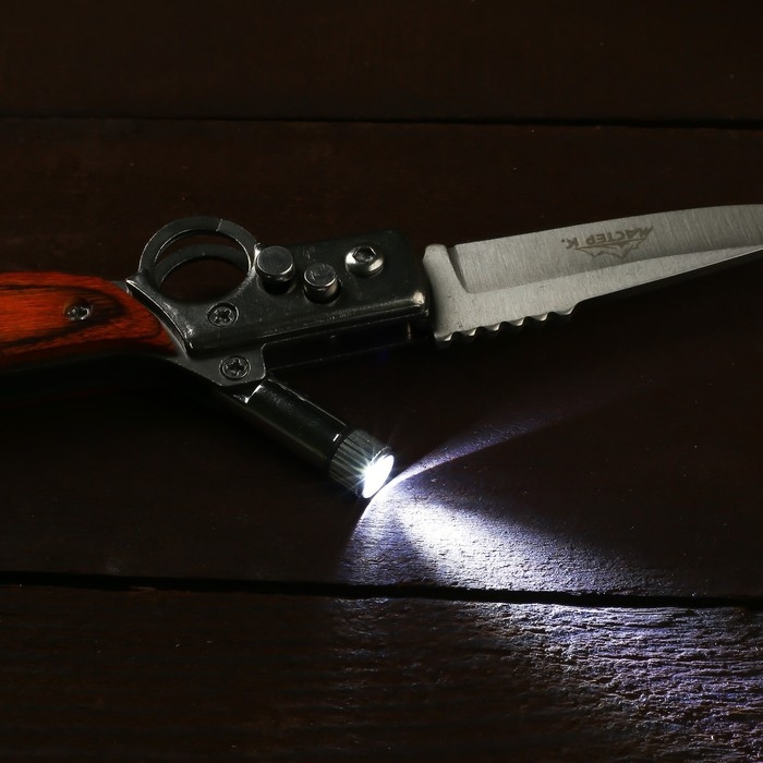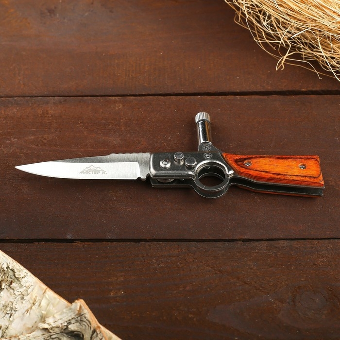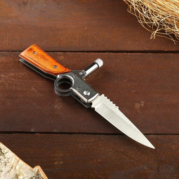Нож складной полуавтоматический "Ружье", клинок 7 см, с фонариком,