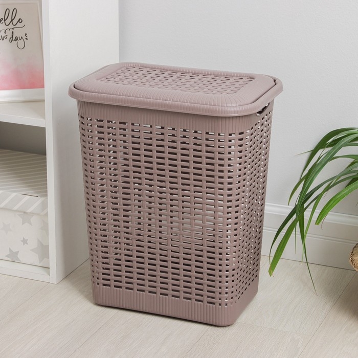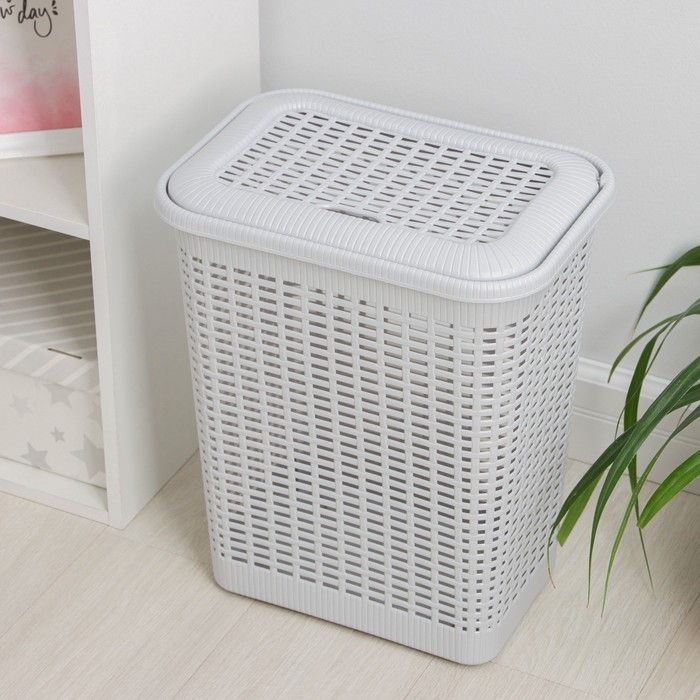 Корзина для белья Доляна «Плетение», с крышкой, 46×34×50 см, цвет серый