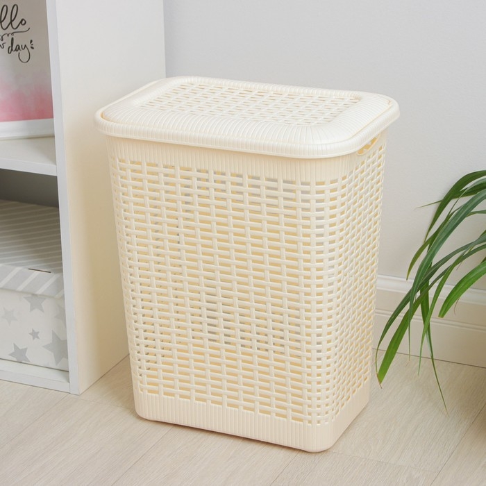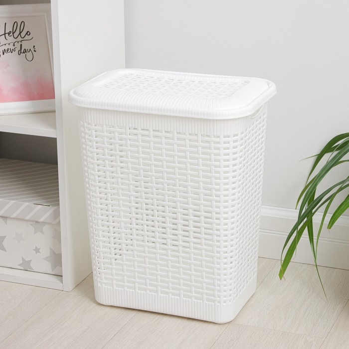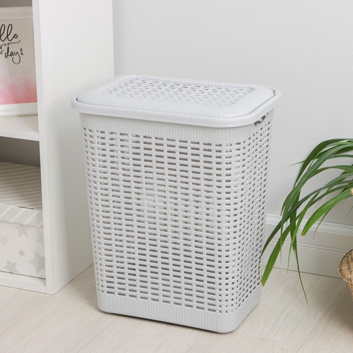 Корзина бельевая с крышкой «Плетёнка люкс», 85 л, 58×39×57 см, цвет белый