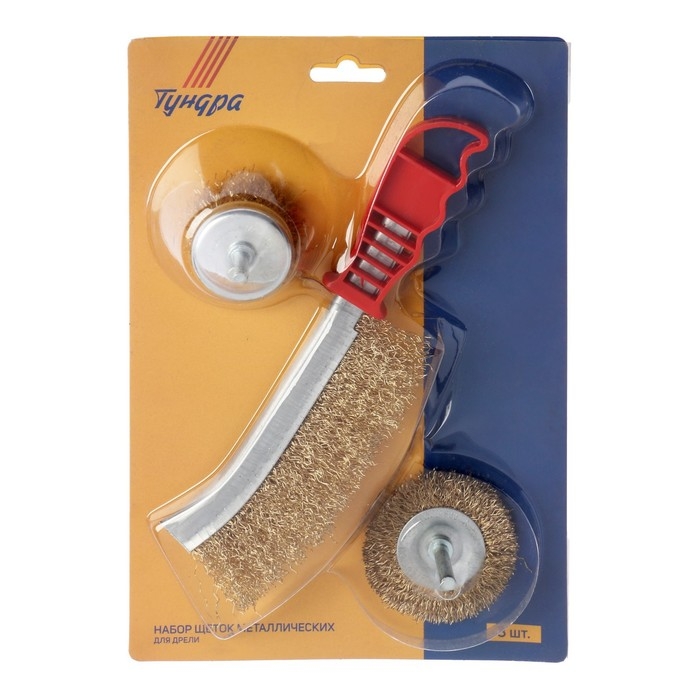 Набор щеток металлических для дрели ТУНДРА, плоская 65 мм, чашка 50 мм + щетка однорядная