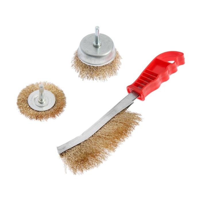 Набор металлических щёток чашечного типа для дрели предназначен для зачистки, шлифования, полирования, матирования изделий из различных материалов, удаления ржавчины и грязи с металлических поверхностей. Щётки изготовлены из витой стальной проволоки с латунным покрытием, обладают высокой прочностью, не подвержены коррозии и окислению.