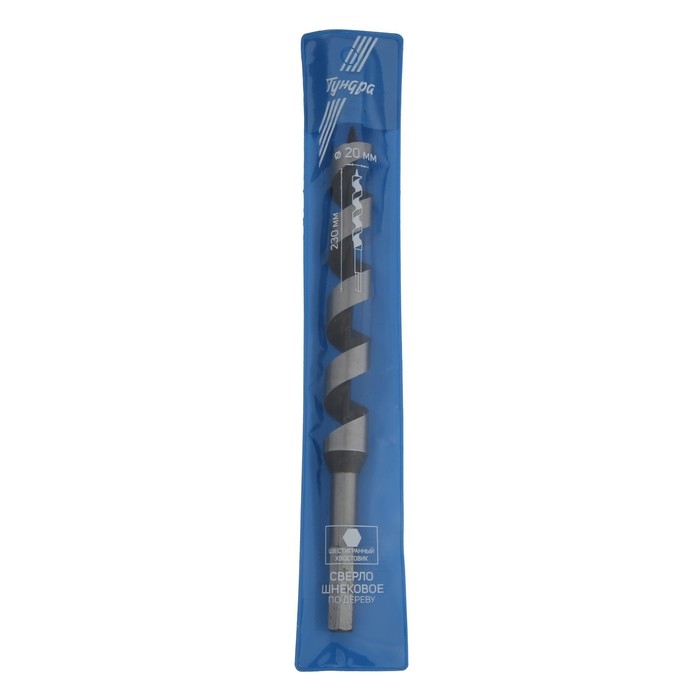 Сверло по дереву шнековое ТУНДРА, шестигранный хвостовик, 20 х 230 мм