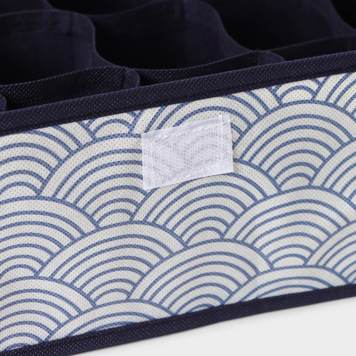 Органайзер для хранения белья с крышкой Доляна «Волна», 24 ячеек, 38×30×12 см, цвет синий