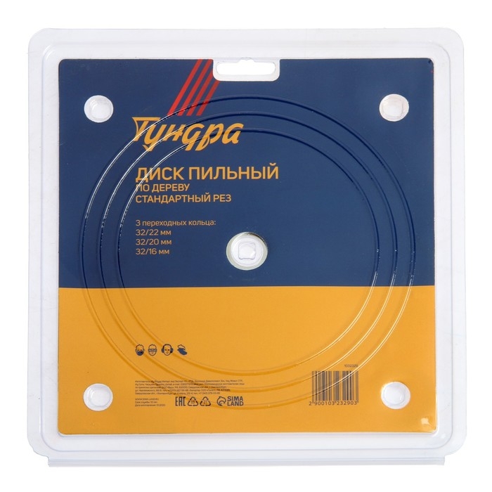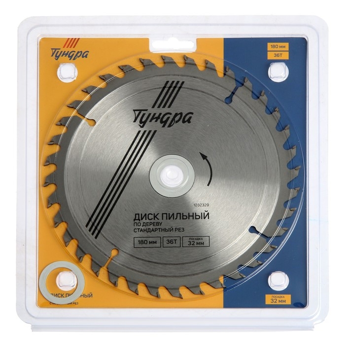 Диск пильный по дереву ТУНДРА, стандартный рез, 180 х 32 мм (кольца на 22,20,16), 36 зубьев