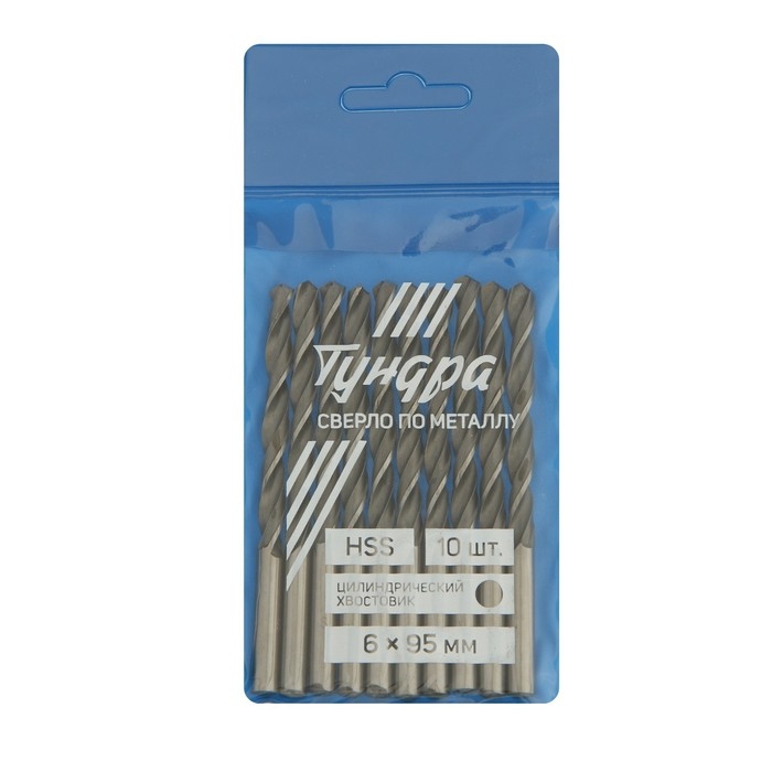 Сверло по металлу ТУНДРА, HSS, цилиндрический хвостовик, 6 х 95 мм,10 шт.