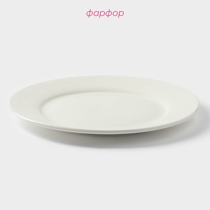 Тарелка фарфоровая обеденная с утолщённым краем Доляна White Label, d=25 см, цвет белый