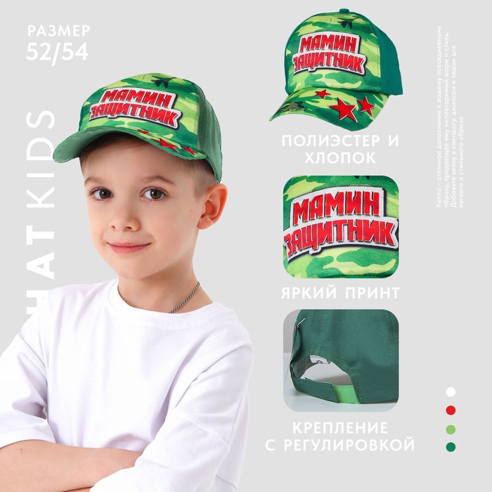 Кепка детская для мальчика «Мамин защитник», р-р. 52-54, 3-7 лет