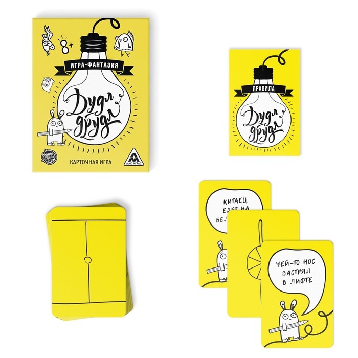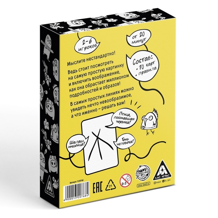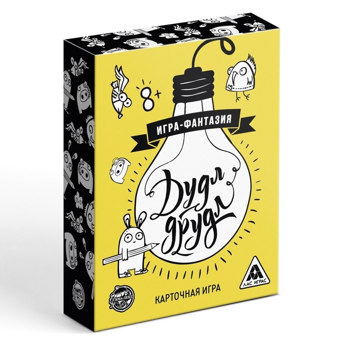 Вам нужно будет придумывать десятки разных ассоциаций, глядя на одну карточку. Вы только посмотрите на этот полукруг! Это дно летающей тарелки или половинка лимона? А может быть, это часть растаявшего снеговика или купол метеостанции? В других вариантах игры участники должны будут догадаться, к какой карте относится ваша ассоциация, или даже дорисовать друдлы, превратив их в целую историю!