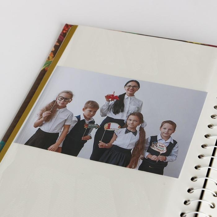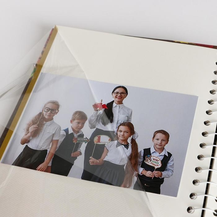 Фотоальбом на выпускной «Самый лучший класс» 10 магнитных листов, 25 × 19 см красив, удобен и надёжен. Изделие состоит из толстых страниц, которые сверху закрываются прозрачной плёнкой. Она плотно примагничивается к страничке и держит снимки на месте.