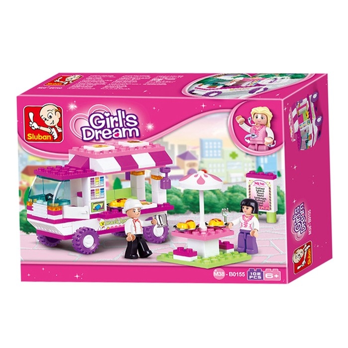 С набором торговой марки Sluban малышка станет владелицей собственного ресторана на колёсах. Девочка соберёт фургон-пекарню, установит столик для гостей на свежем воздухе и будет ждать своих первых посетителей.