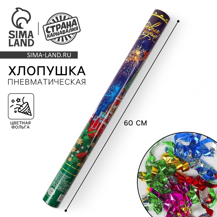 Пневмохлопушка поворотная новогодняя «С Новым годом! Куранты», конфетти, фольга-серпантин, 60 см