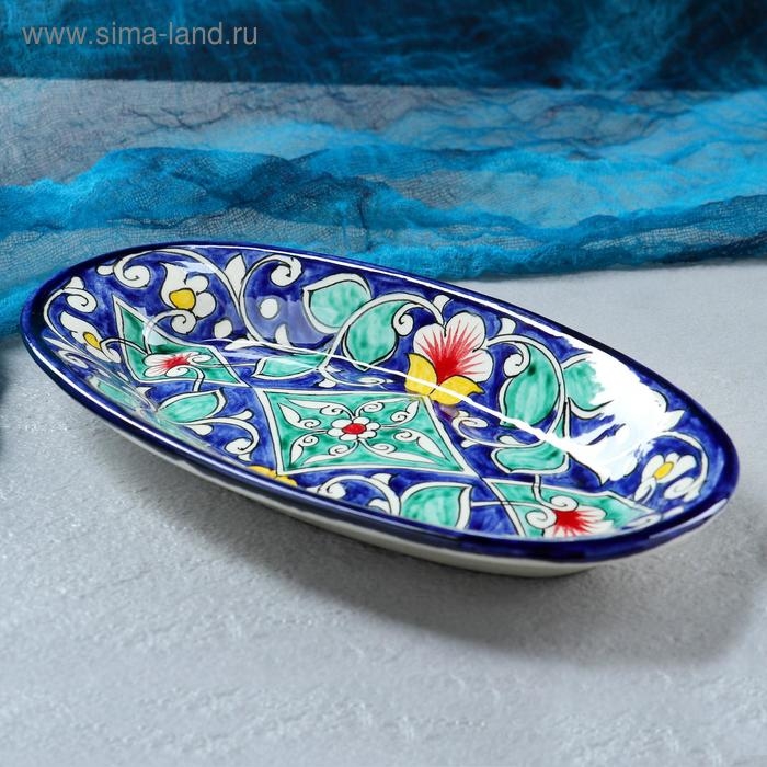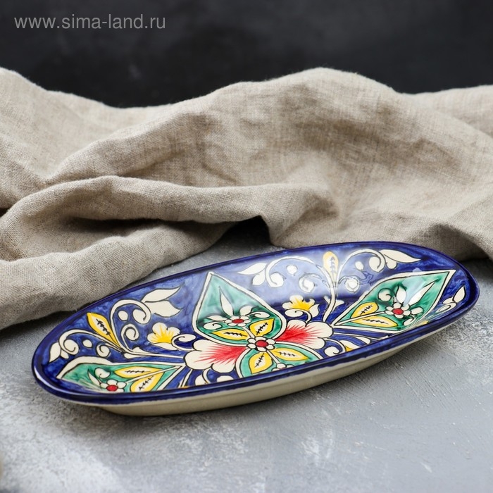 Селёдочница Риштанская Керамика "Цветы", 24 см, синяя, микс
