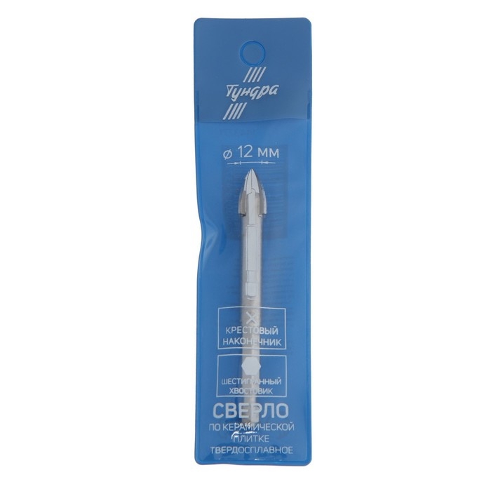 Сверло по керамике твердосплавное ТУНДРА, крестовый наконечник, шестигр. хвостовик, 12 мм
