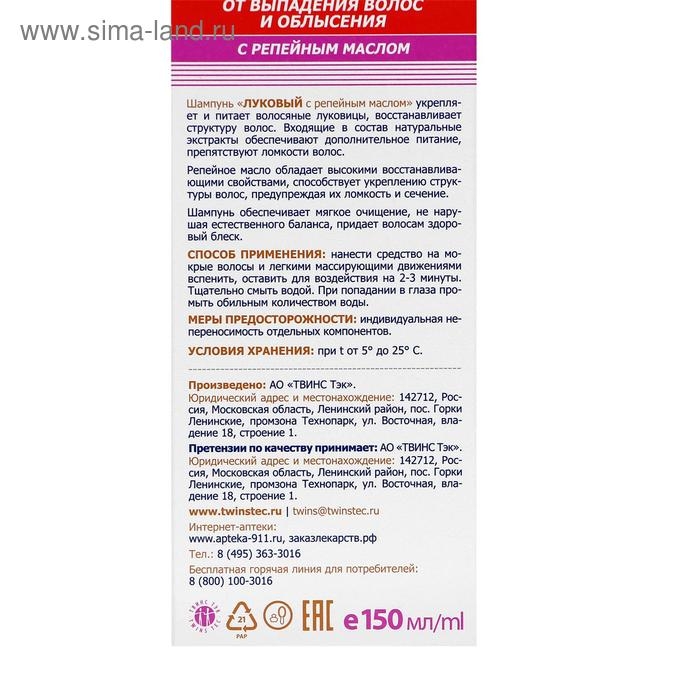 Шампунь «911 Луковый» с репейным маслом, от выпадения волос и облысения, 150 мл