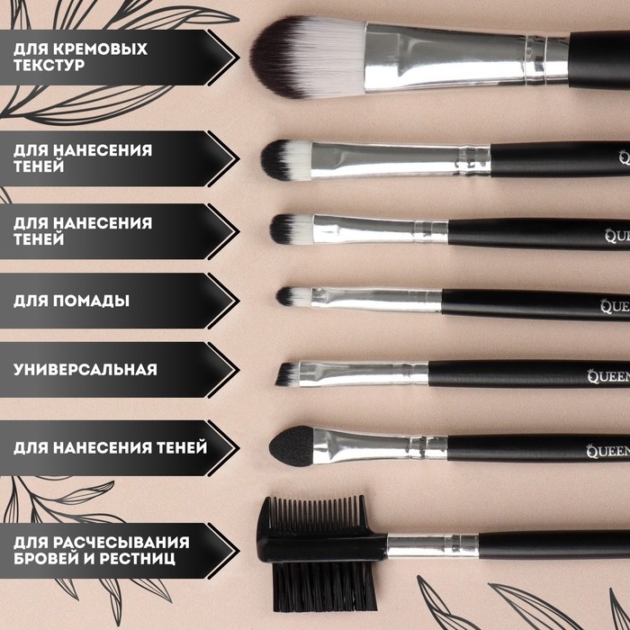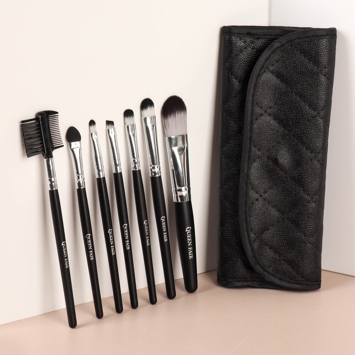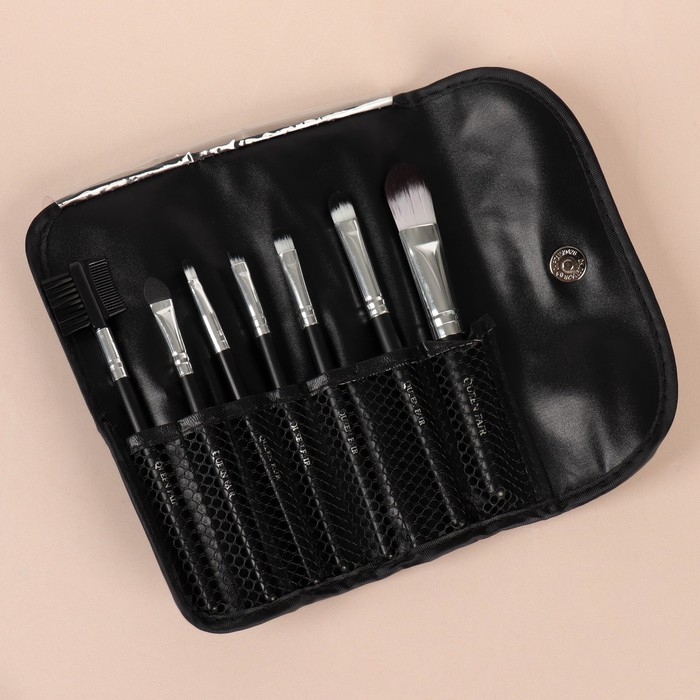 Набор кистей для макияжа, 7 предметов, чехол на кнопке, цвет чёрный