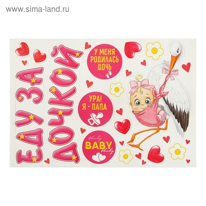 Набор магнитов на авто «Еду за дочкой!», на выписку