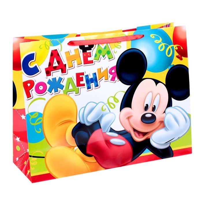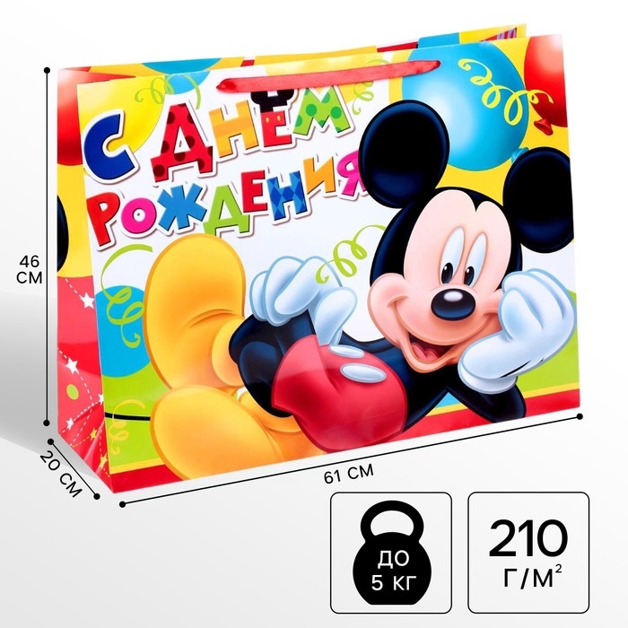 Пакет подарочный "С Днем рождения!" 61х46х20 см, упаковка, Микки Маус