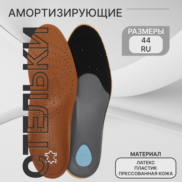 Стельки для обуви, амортизирующие, дышащие, с жёстким супинатором, р-р RU 44 (р-р Пр-ля 44), 28 см, пара, цвет коричневый